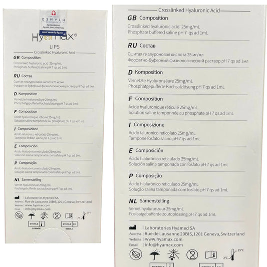 Hyamax Lips Filler 25mg/mL – Crosslinked Hyaluronic Acid - Made in Switzerland